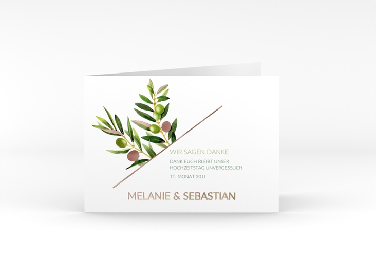 Danksagungskarte Hochzeit "Olivenzweig" - A6 Klappkarte quer