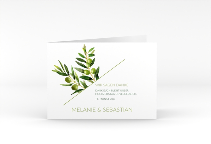 Danksagungskarte Hochzeit "Olivenzweig" - A6 Klappkarte quer
