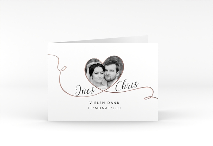 Danksagungskarte Hochzeit Dolce A6 Klappkarte quer weiss rosegold   Danksagungskarte Hochzeit Dolce A6 Klappkarte quer weiss rosegold