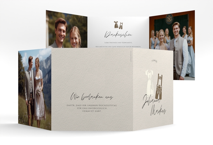 Dankeskarte Hochzeit "Trachtenhochzeit" - quadr. Doppel-Klappkarte
