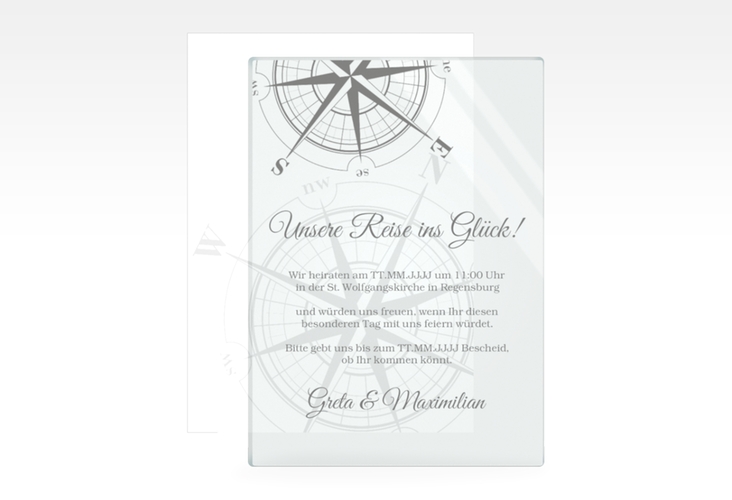 Acryl-Hochzeitseinladung "Windrose" - Acrylkarte + Deckblatt hoch