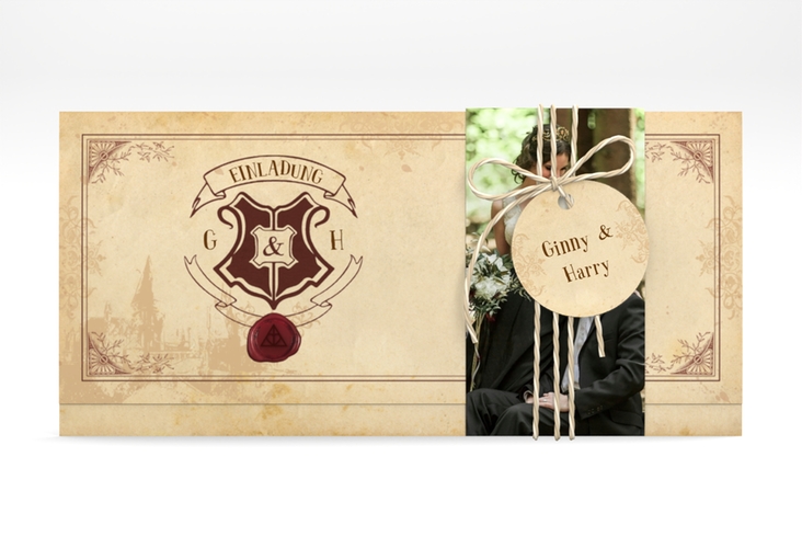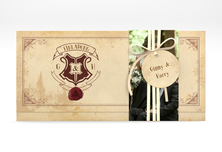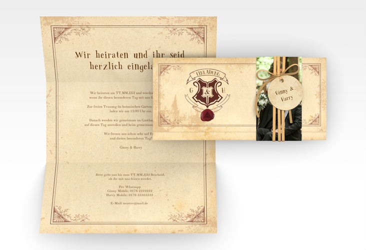 Hochzeitseinladung "Zauberkunst" - Wickelfalzkarte + Banderole