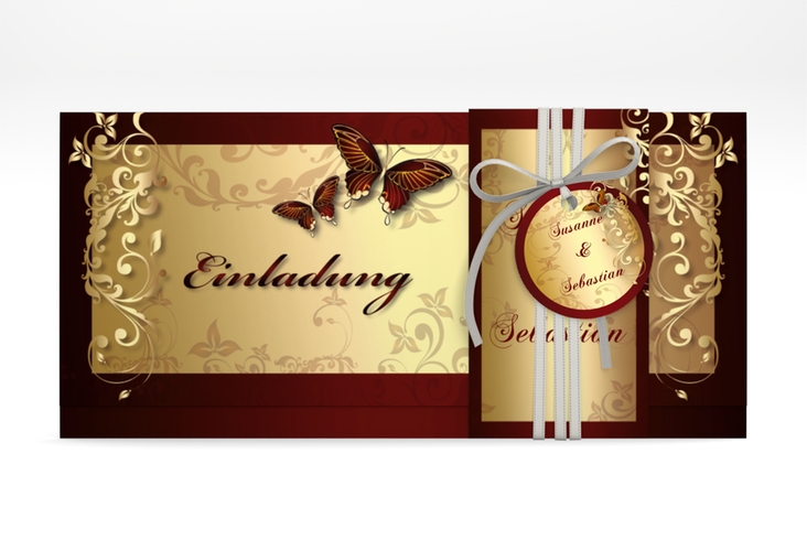 Hochzeitseinladung "Toulouse" - Wickelfalzkarte + Banderole