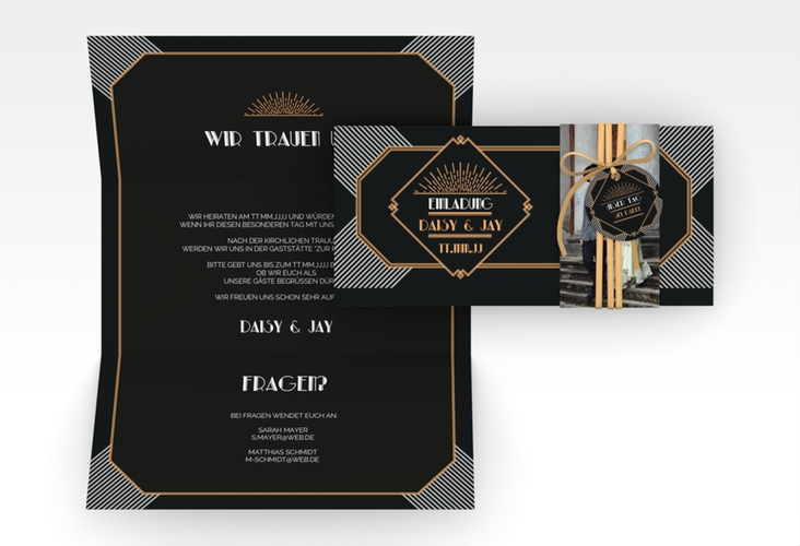 Hochzeitseinladung "Gatsby" - Wickelfalzkarte + Banderole