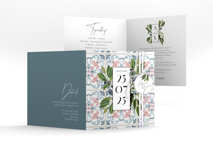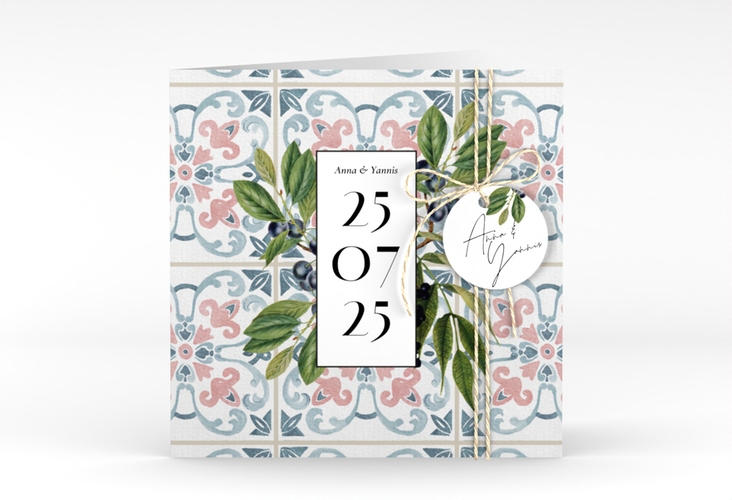 Hochzeitseinladung "Mediterraner Flair" - quadr. Klappkarte