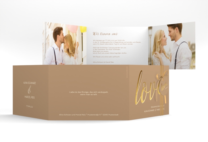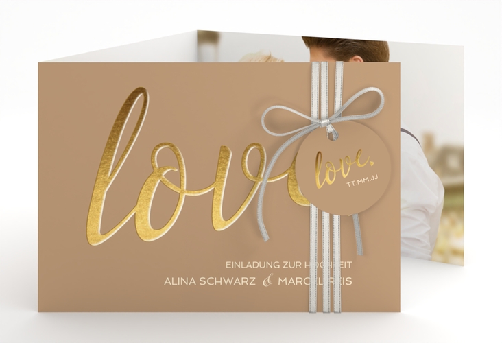 Hochzeitseinladung Glam A6 Doppel-Klappkarte beige hochglanz Hochzeitseinladung Glam A6 Doppel-Klappkarte beige hochglanz