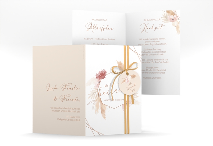 Einladungskarte Hochzeit "Bohostyle" - A6 Klappkarte hoch