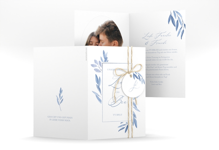 Einladungskarte Hochzeit "Classicblue" - A6 Klappkarte hoch