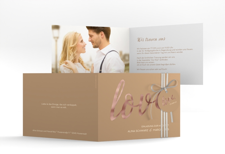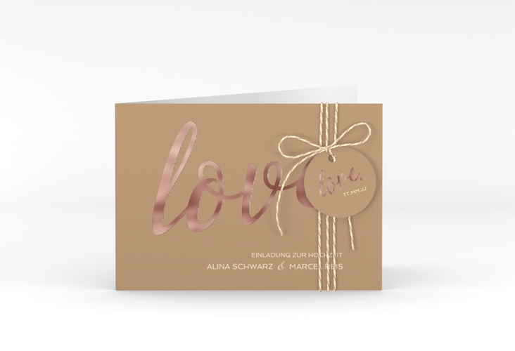 Hochzeitseinladung Glam A6 Klappkarte quer rosegold   Hochzeitseinladung Glam A6 Klappkarte quer rosegold