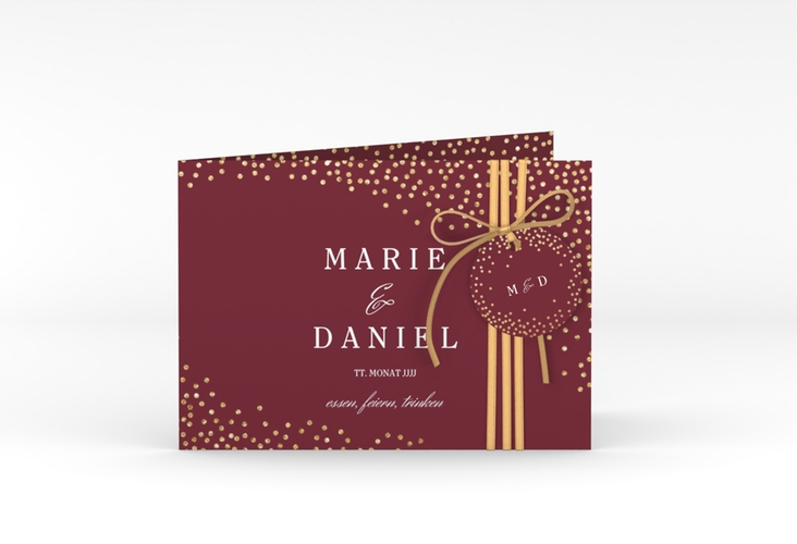 Goldene Glitzerpunkte rieseln wie Konfetti über die A6 Klappkarte. Die Kollektion Glitter in rot ist ein wahres Highlight für eine feierliche und elegante Hochzeit.