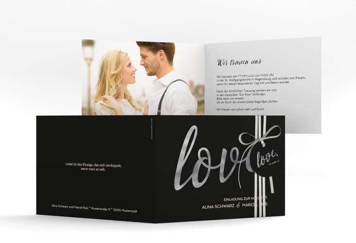 Hochzeitseinladung Glam A6 Klappkarte quer schwarz silber   Hochzeitseinladung Glam A6 Klappkarte quer schwarz silber