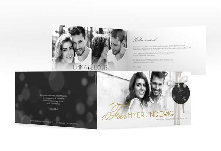 Hochzeitseinladung "Bokeh" - lange Klappkarte quer