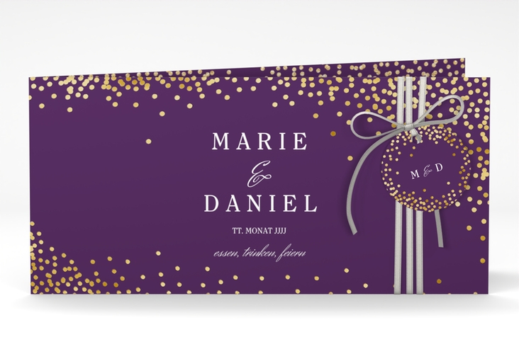 Hochzeitseinladung "Glitter" - lange Klappkarte quer