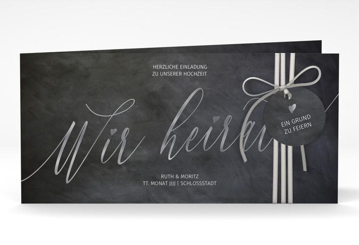 Hochzeitseinladung "Chalkboard" - lange Klappkarte quer