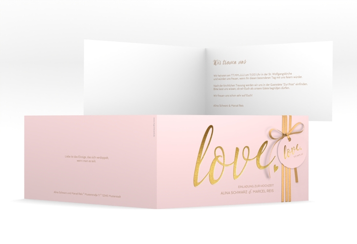 Hochzeitseinladung "Glam" - lange Klappkarte quer