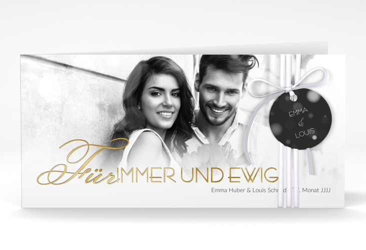 Hochzeitseinladung "Bokeh" - lange Klappkarte quer