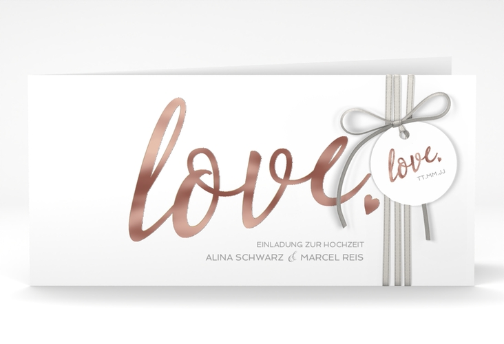 Hochzeitseinladung Glam lange Klappkarte quer weiss rosegold   Hochzeitseinladung Glam lange Klappkarte quer weiss rosegold