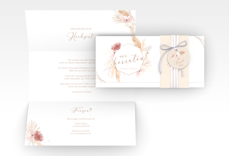 Hochzeitseinladung "Bohostyle" - Wickelfalzkarte + Banderole