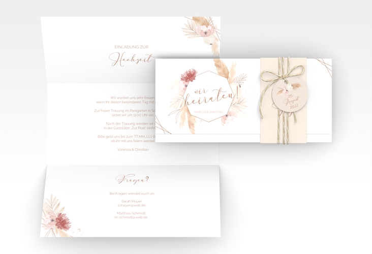Hochzeitseinladung "Bohostyle" - Wickelfalzkarte + Banderole