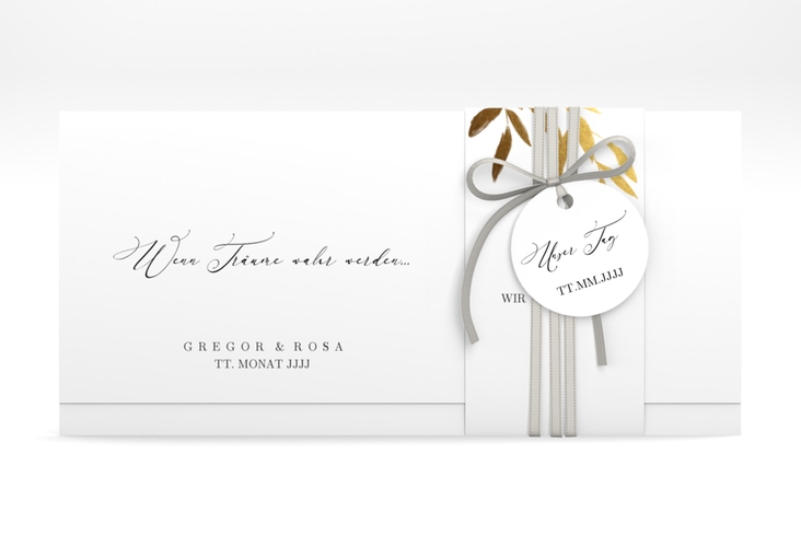 Hochzeitseinladung "Demure" - Wickelfalzkarte + Banderole