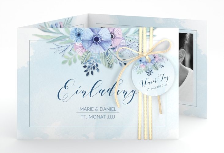 Hochzeitseinladung "Surfinia" - A6 Doppel-Klappkarte