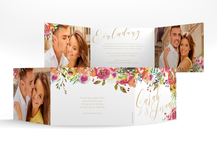 Hochzeitseinladung "Flowerbomb" - A6 Doppel-Klappkarte