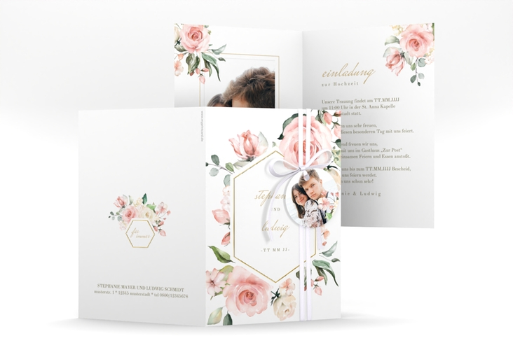 Einladungskarte Hochzeit "Graceful" - A6 Klappkarte hoch