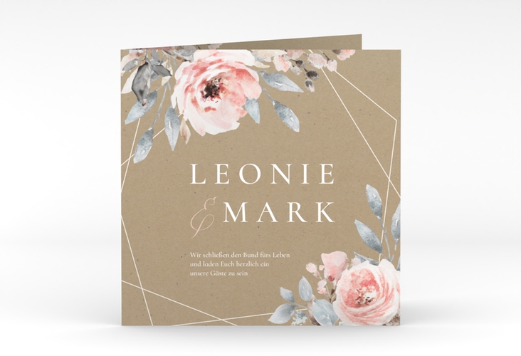 Hochzeitseinladung Perfection quadr. Klappkarte Kraftpapier hochglanz mit rosa Rosen Hochzeitseinladung Perfection quadr. Klappkarte Kraftpapier hochglanz mit rosa Rosen