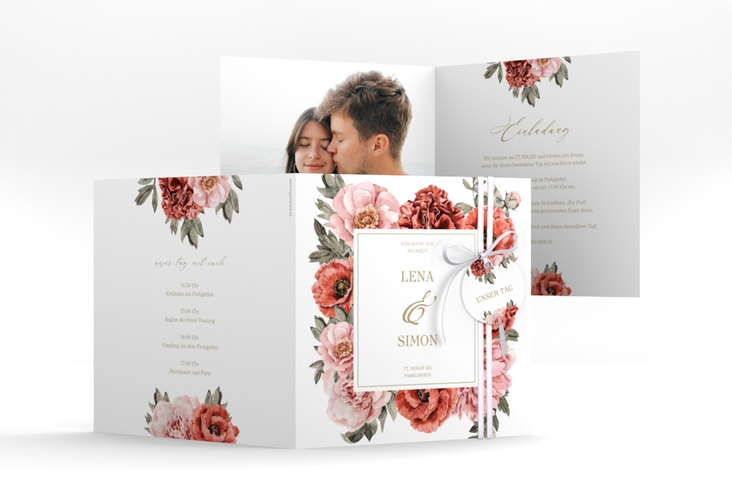 Einladungskarte Hochzeit Amapola quadr. Klappkarte weiss Einladungskarte Hochzeit Amapola quadr. Klappkarte weiss