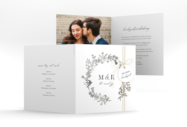 Hochzeitseinladung Filigree quadr. Klappkarte weiss silber   Hochzeitseinladung Filigree quadr. Klappkarte weiss silber