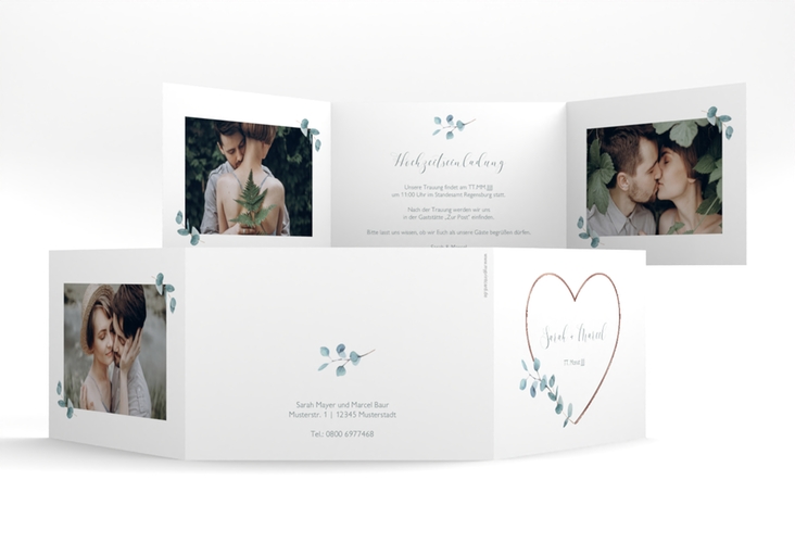 Hochzeitseinladung "Greenheart" - A6 Doppel-Klappkarte