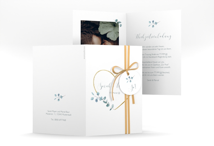Einladungskarte Hochzeit "Greenheart" - A6 Klappkarte hoch
