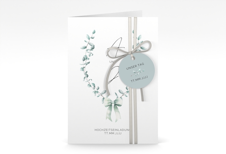 Einladungskarte Hochzeit "Eucalypt Bow" - A6 Klappkarte hoch