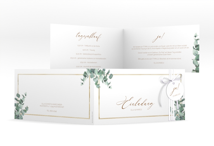 Hochzeitseinladung "Eucalypt" - lange Klappkarte quer