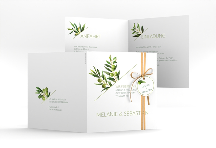 Hochzeitseinladung "Olivenzweig" - quadr. Klappkarte