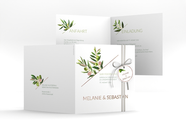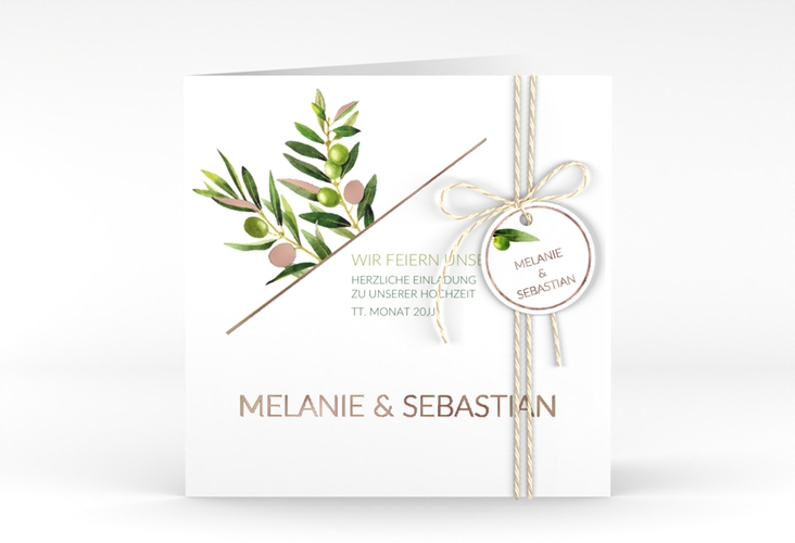 Hochzeitseinladung "Olivenzweig" - quadr. Klappkarte