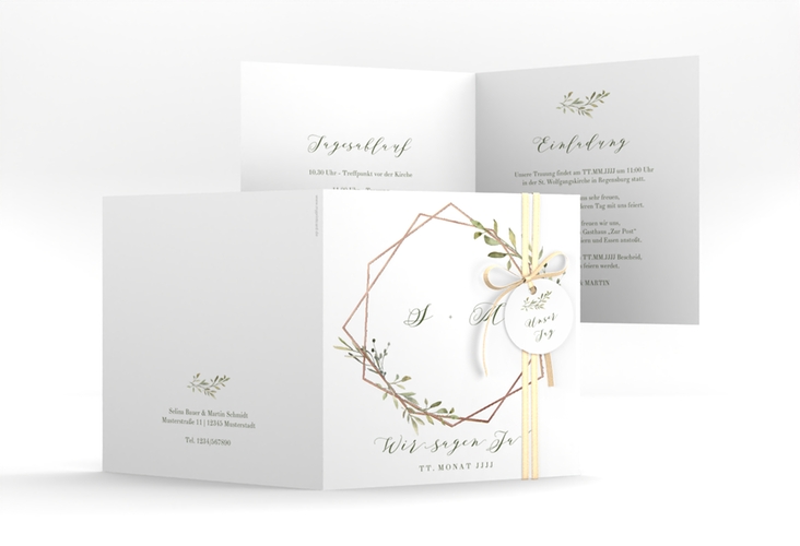 Hochzeitseinladung Acacia quadr. Klappkarte weiss rosegold   Hochzeitseinladung Acacia quadr. Klappkarte weiss rosegold