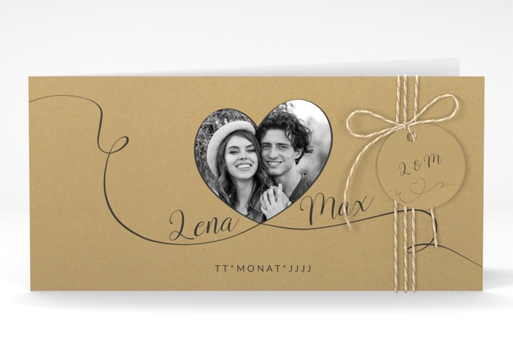 Hochzeitseinladung "Herzensbund" - lange Klappkarte quer