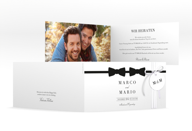 Hochzeitseinladung "Suits" - lange Klappkarte quer