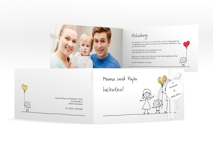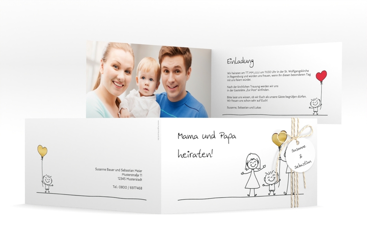 Hochzeitseinladung "Family" - lange Klappkarte quer