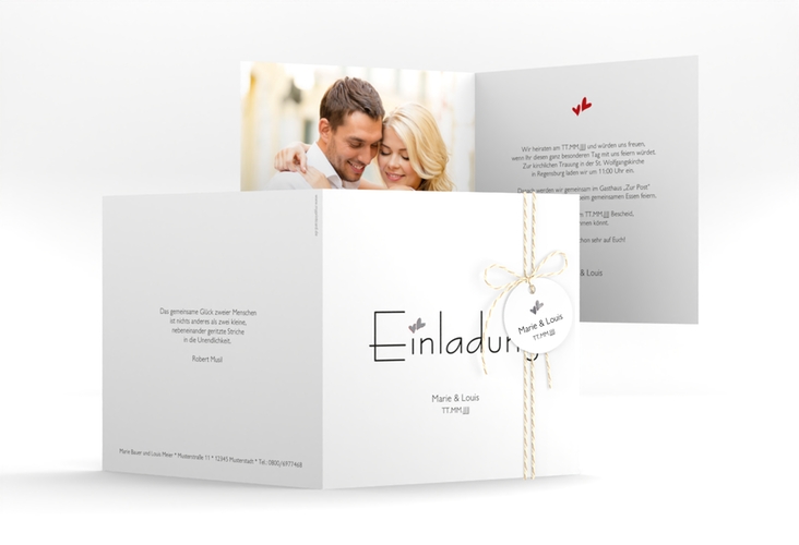 Hochzeitseinladung "Twohearts" - quadr. Klappkarte