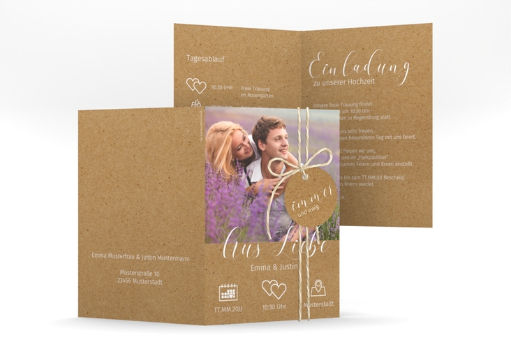 Einladungskarte Hochzeit "Timetable" - A6 Klappkarte hoch