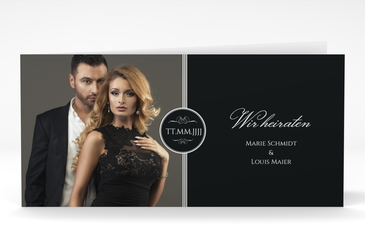 Hochzeitseinladung "Elegancy" - lange Klappkarte quer