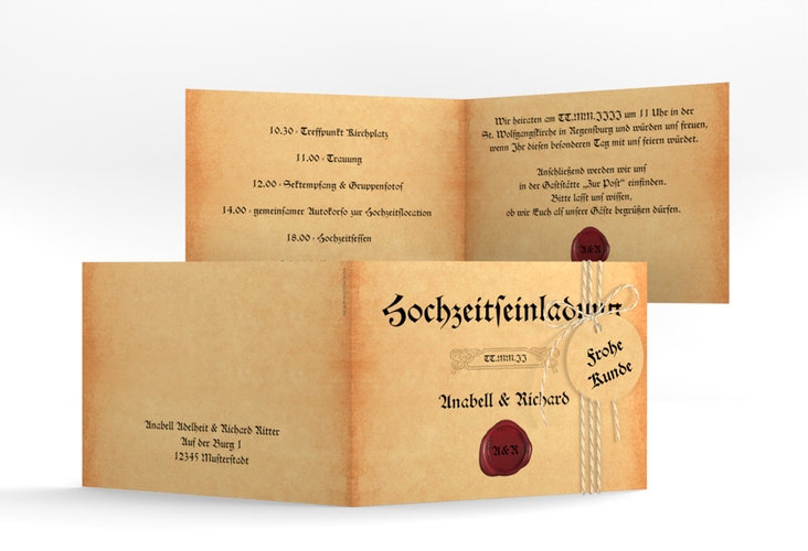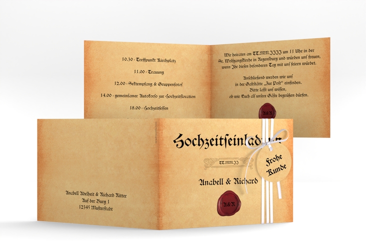 Unser Kennenlern-Angebot: Gratis Musterexemplar Ihrer Hochzeiteinladung Hochzeit "Mittelalter" (A6 Klappkarte quer)
