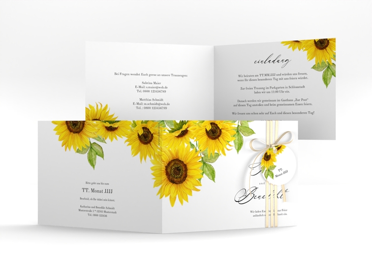 Hochzeitseinladung "Sonnenblume" - A6 Klappkarte quer