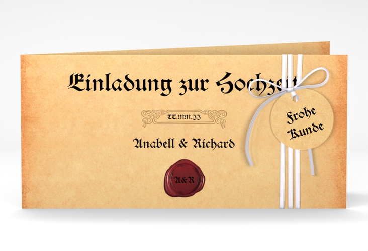 Hochzeitseinladung "Mittelalter" - lange Klappkarte quer