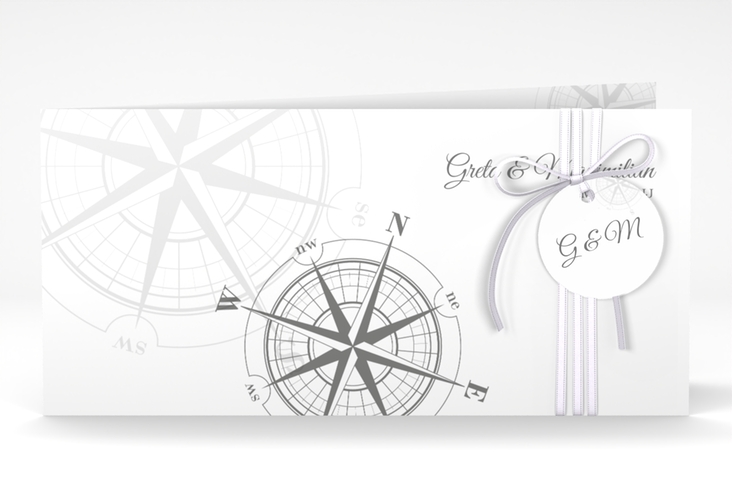 Hochzeitseinladung "Windrose" - lange Klappkarte quer