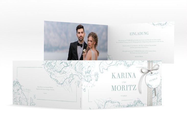 Hochzeitseinladung "Voyage" - lange Klappkarte quer