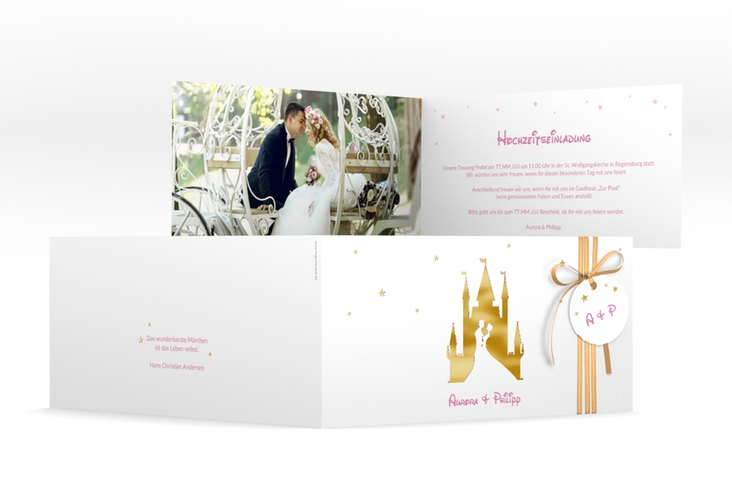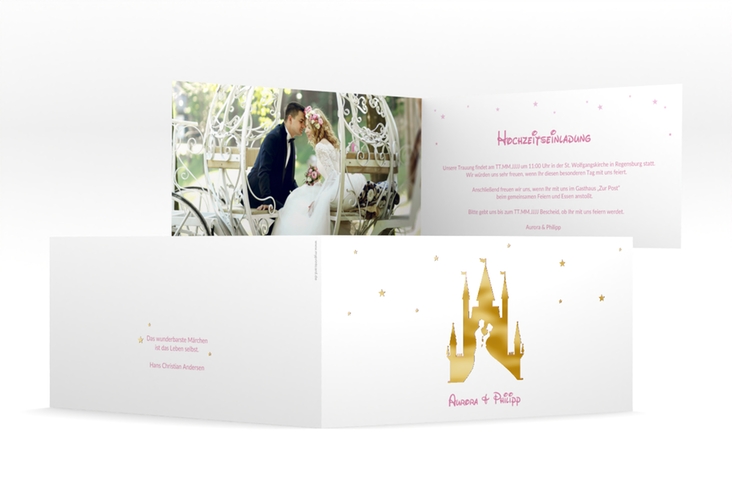 Hochzeitseinladung "Castle" - lange Klappkarte quer