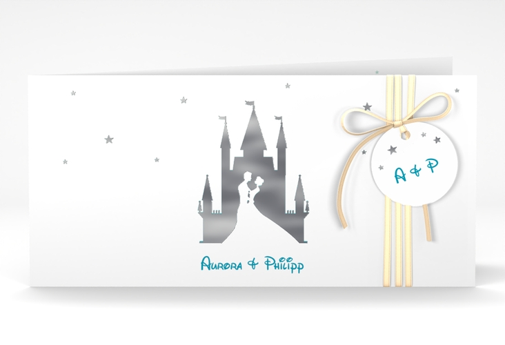 Hochzeitseinladung "Castle" - lange Klappkarte quer